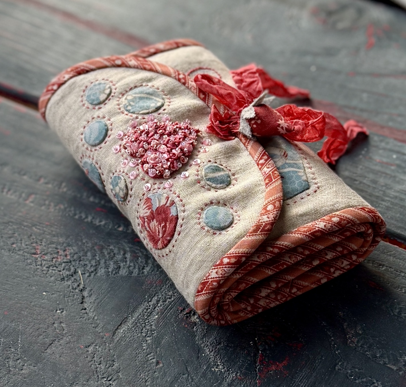 Create a classic, functional Hussif (also known as a Sewing Roll or Housewife) with this detailed PDF pattern and step-by-step video workshop! Designed for stitchers of all levels, this sewing roll keeps your favorite tools beautifully organized with pockets, flaps, and thoughtful details.